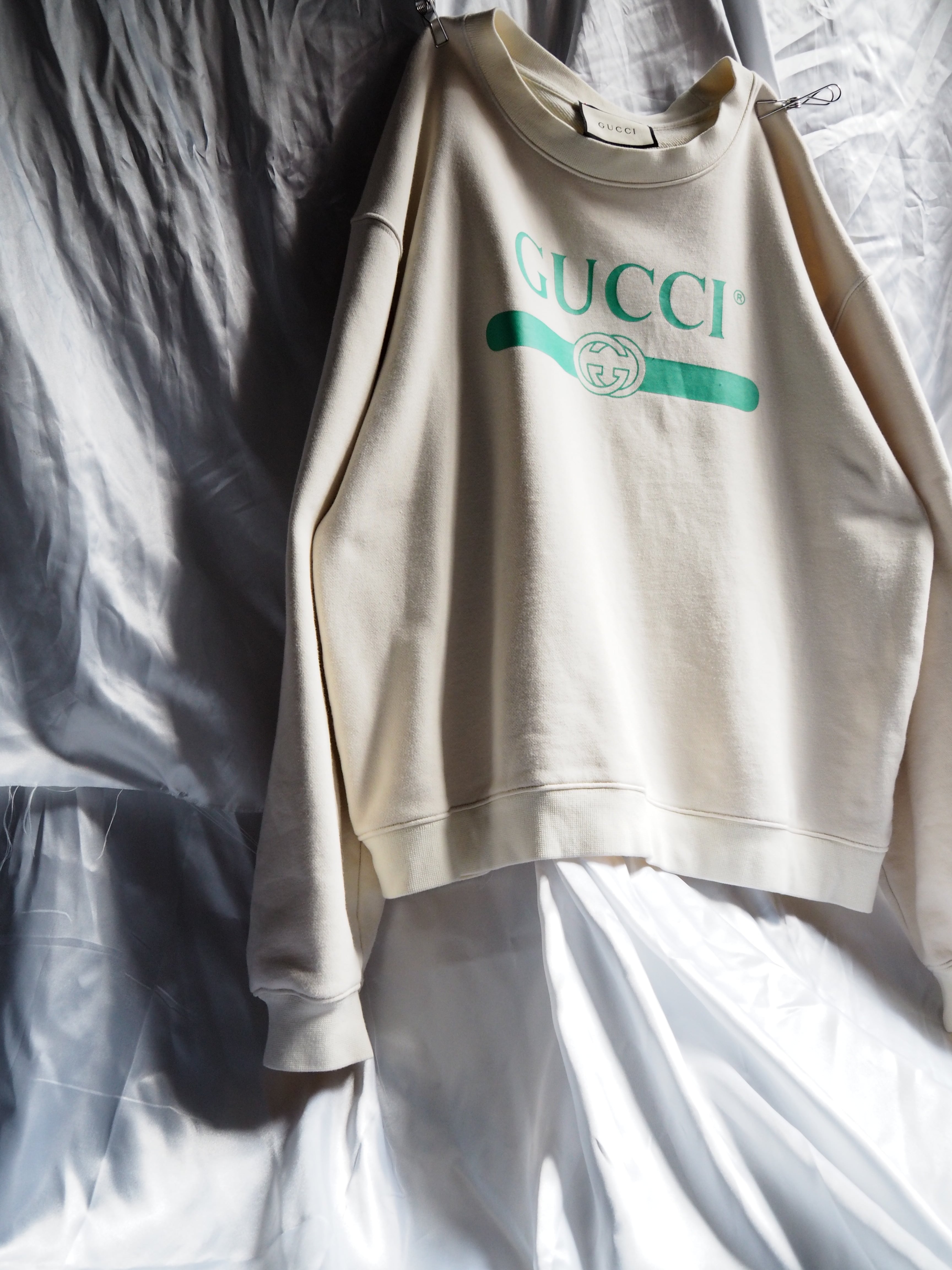 こういったブランドスウェットを土臭いワークパンツなんかと合わせたら面白いかなと思いました