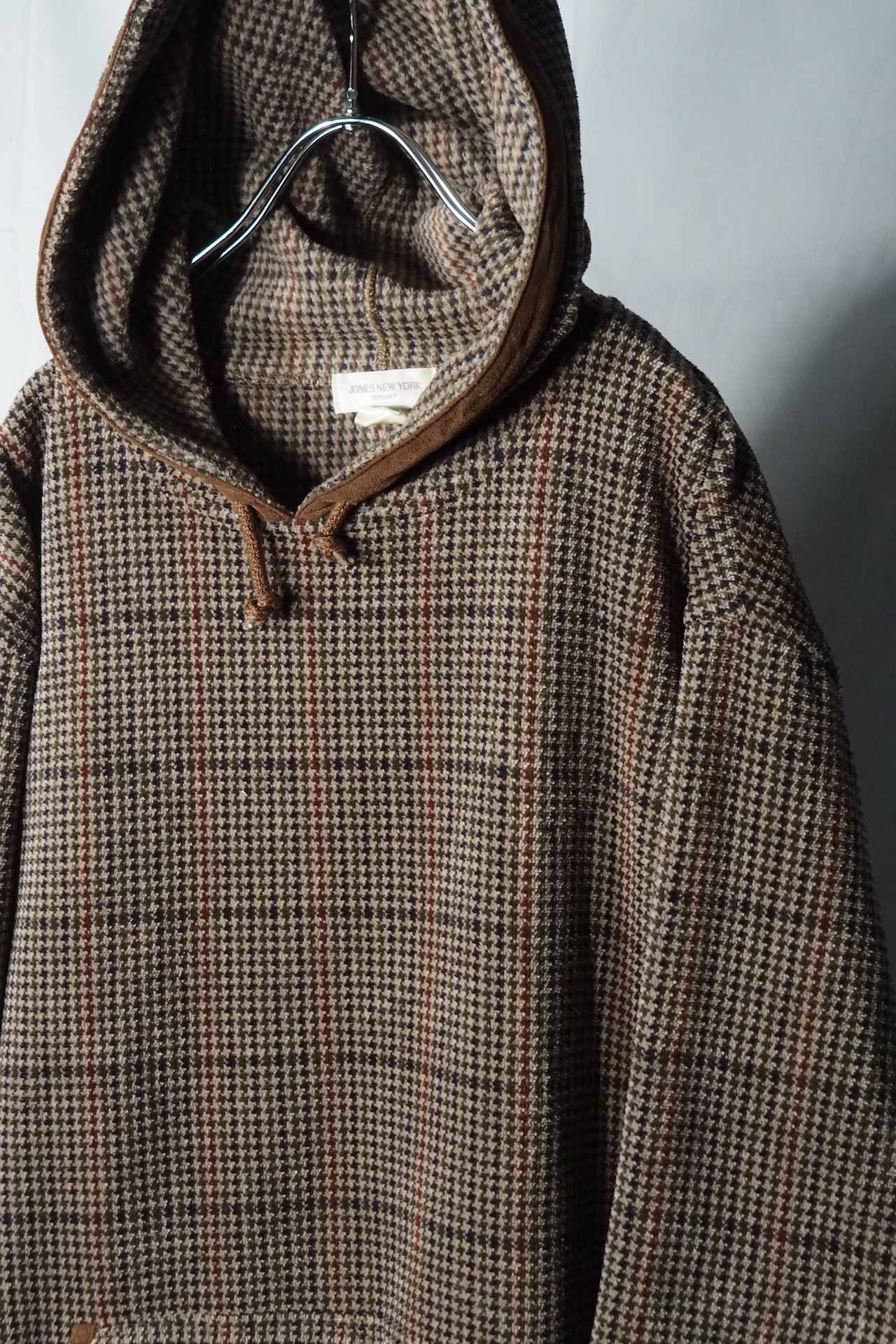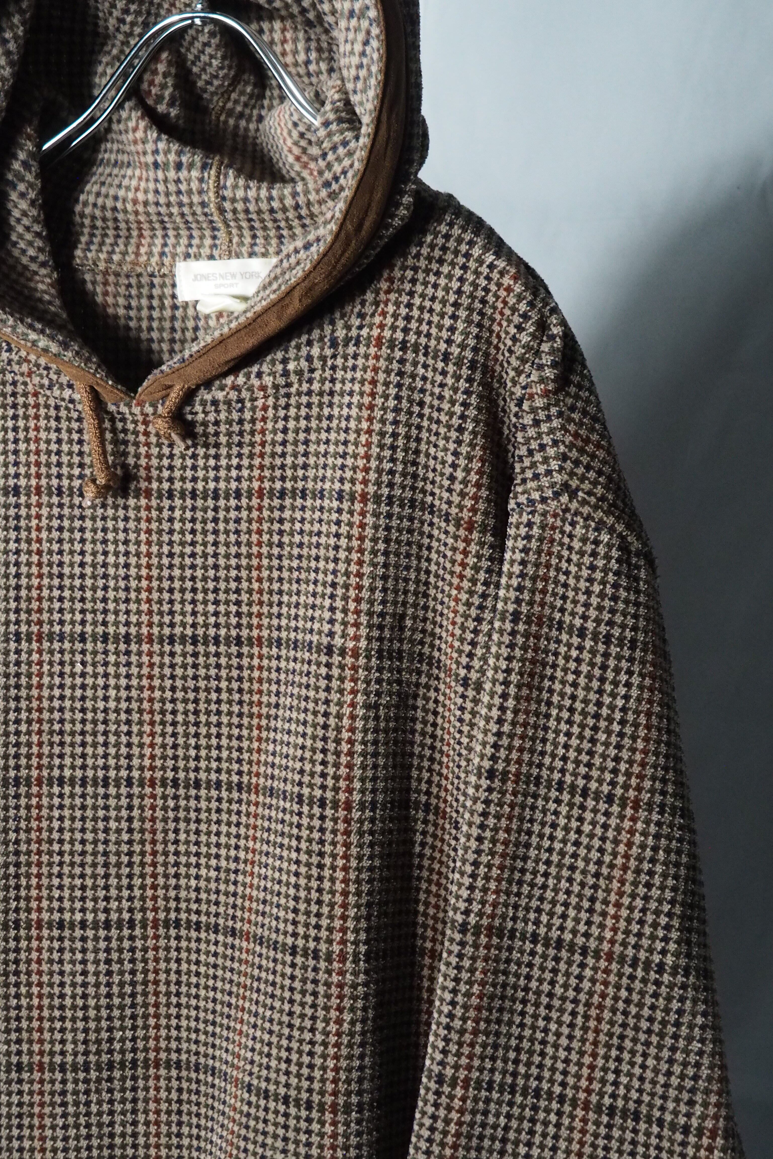 "Jones New York" glencheck velour parka