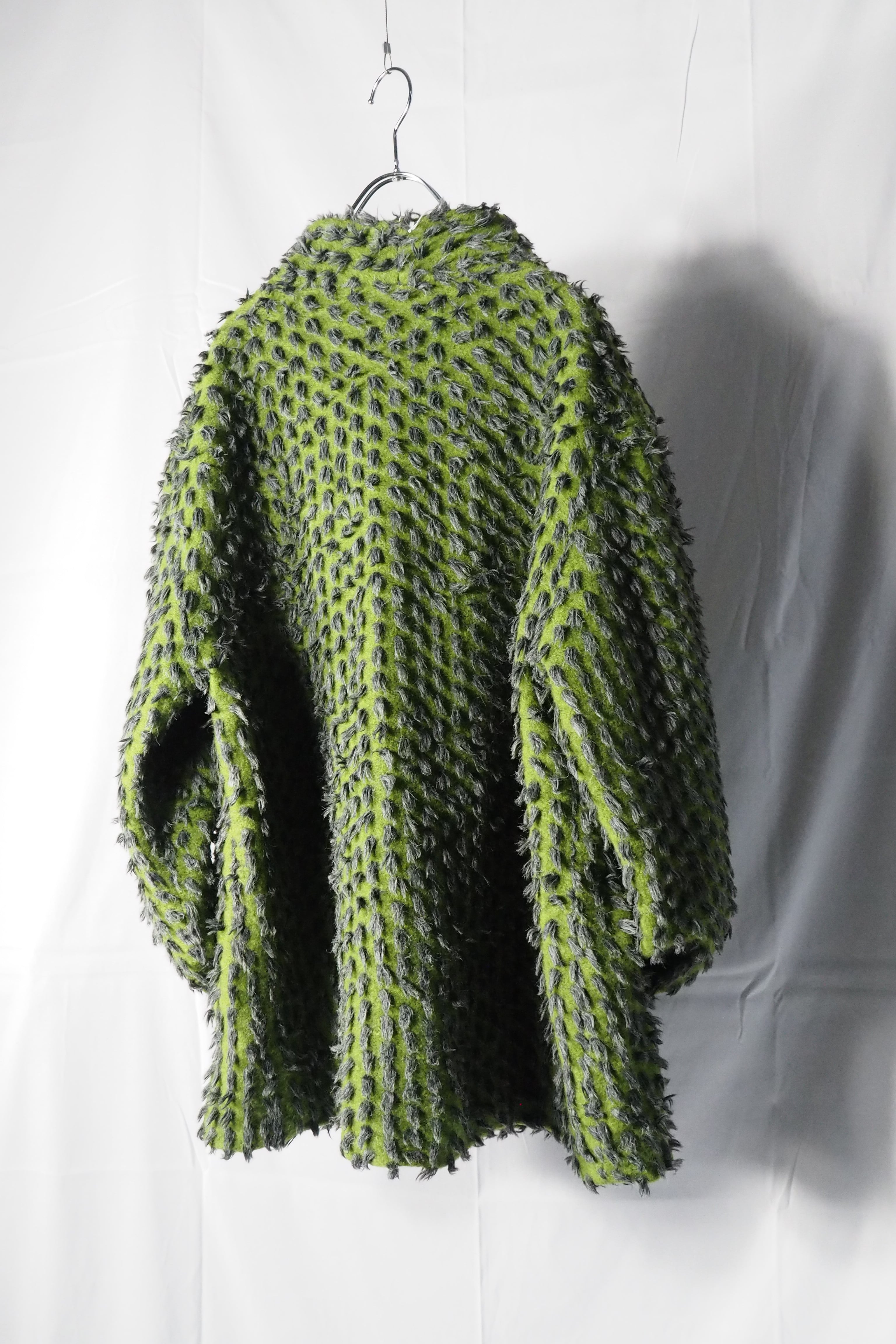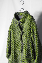 蛍光グリーンのフェルト生地にグレーのフリンジ