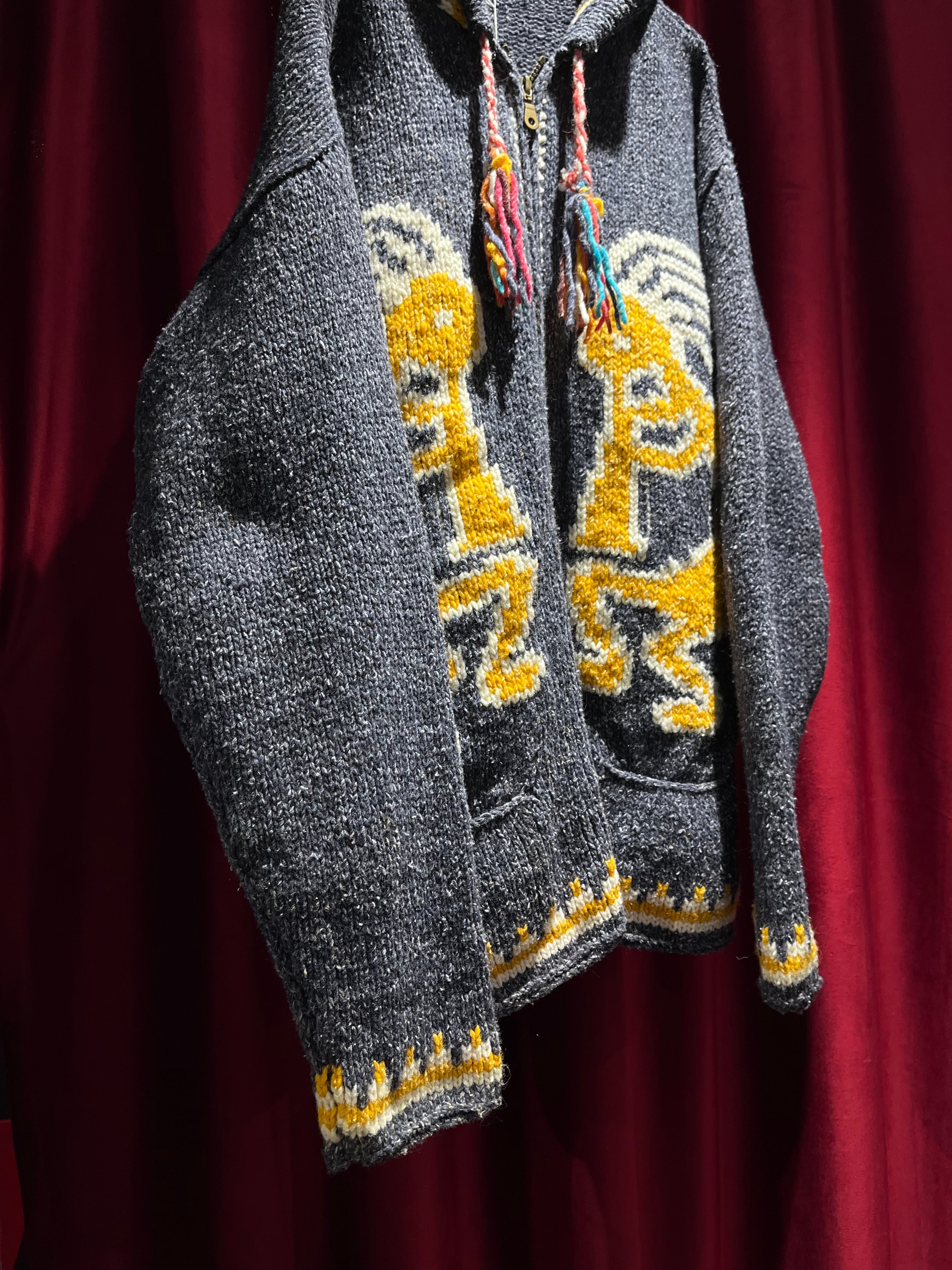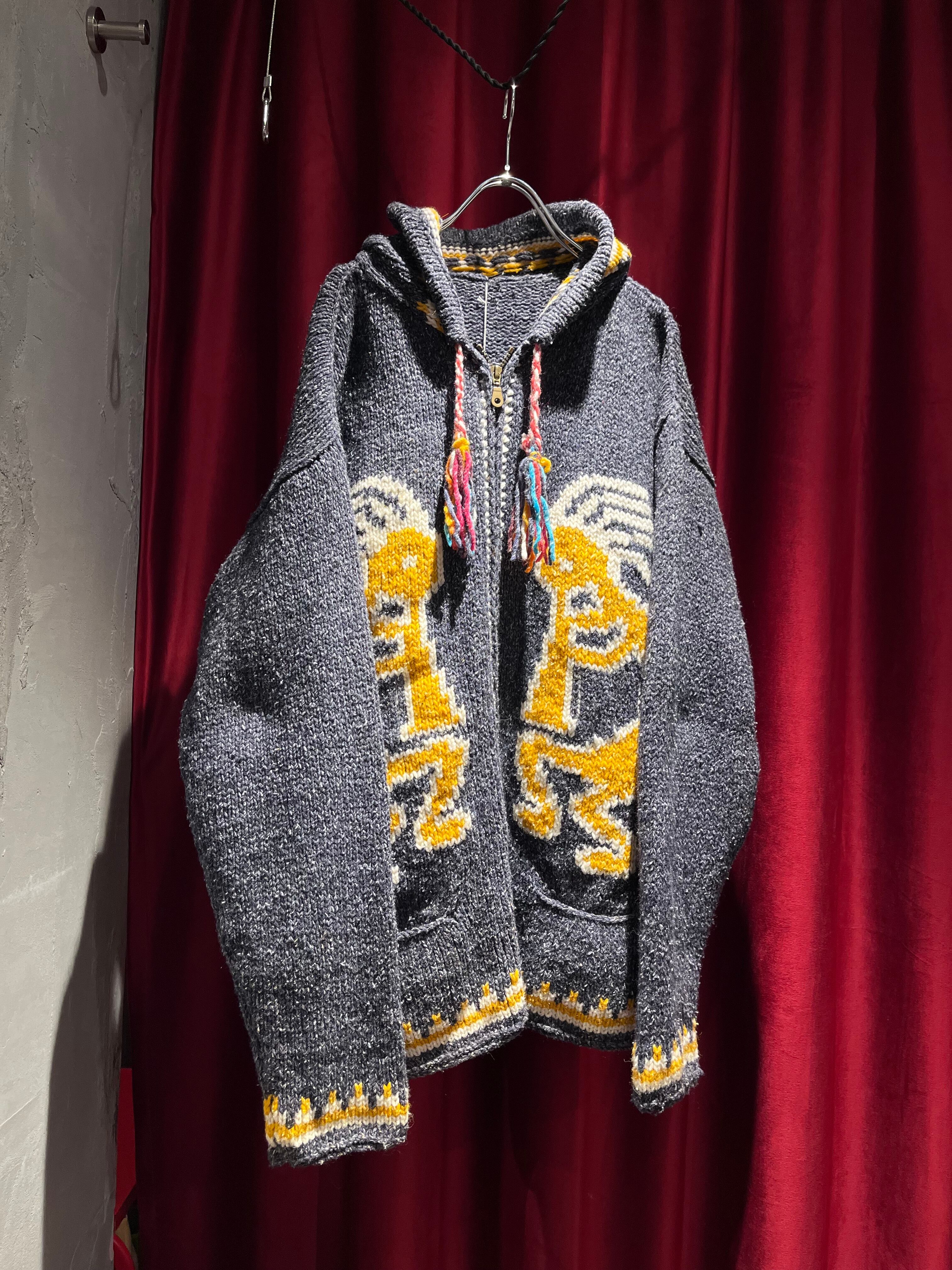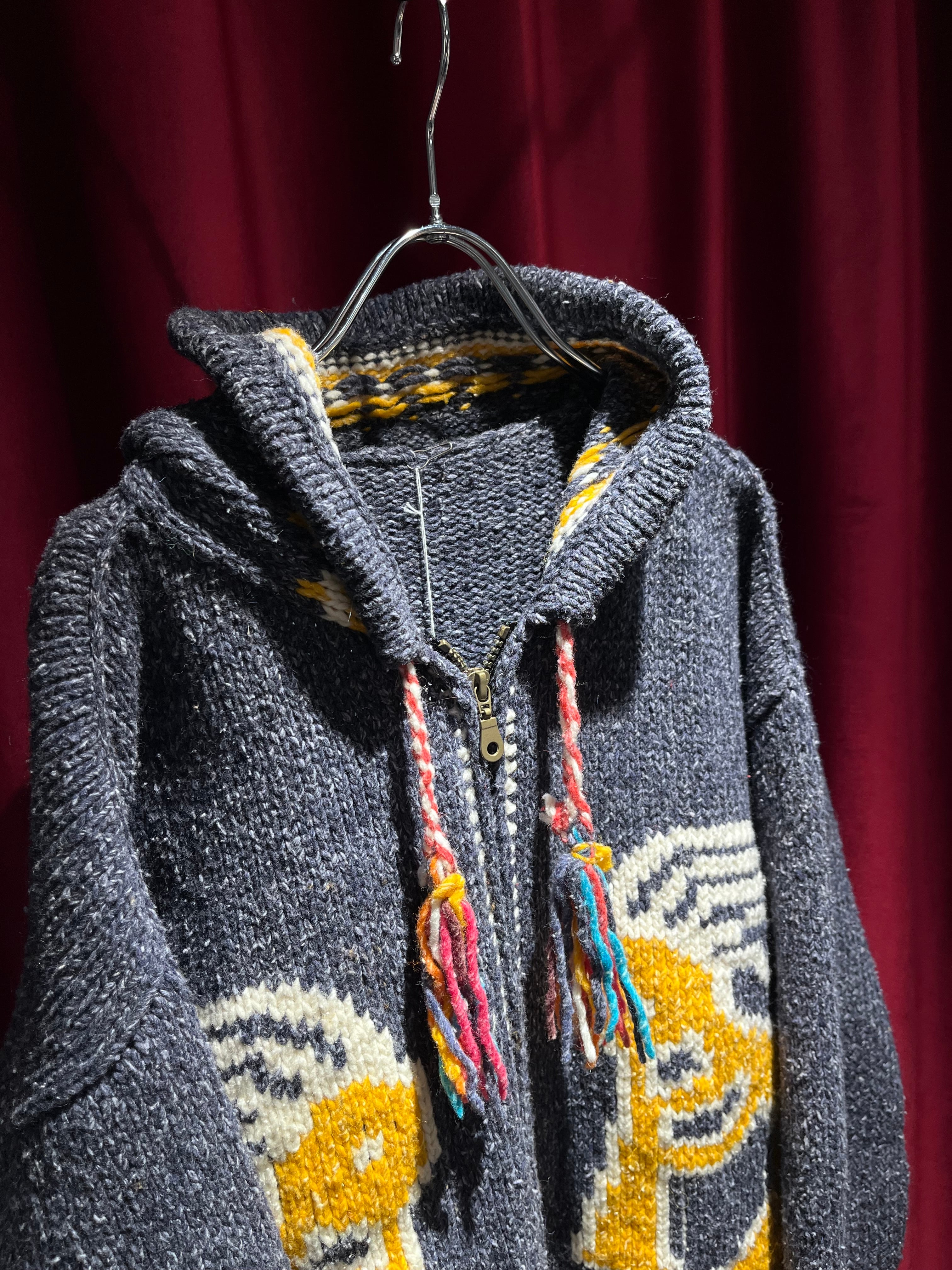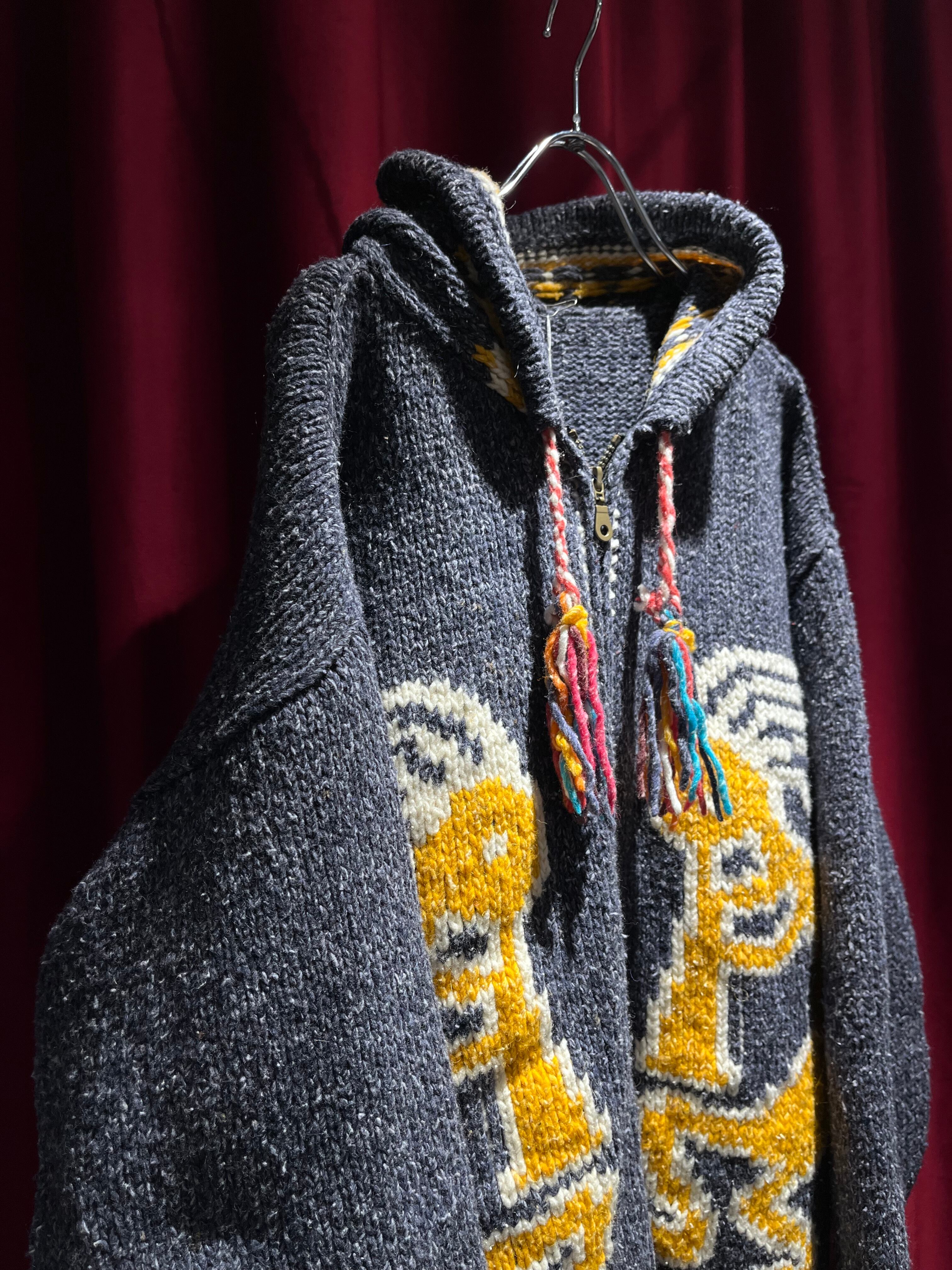 トンガリ帽が特徴的なパーカータイプのエクアドルニット