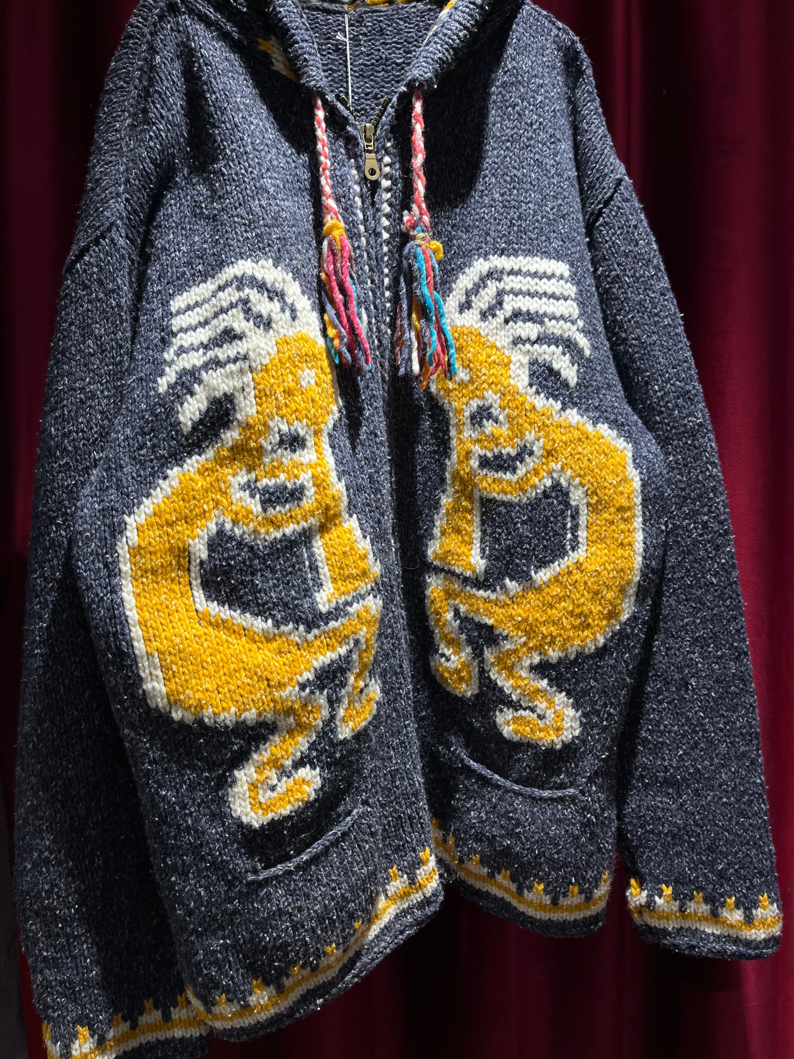 Ecuador hand knit wool zip parka / "kokopeli"