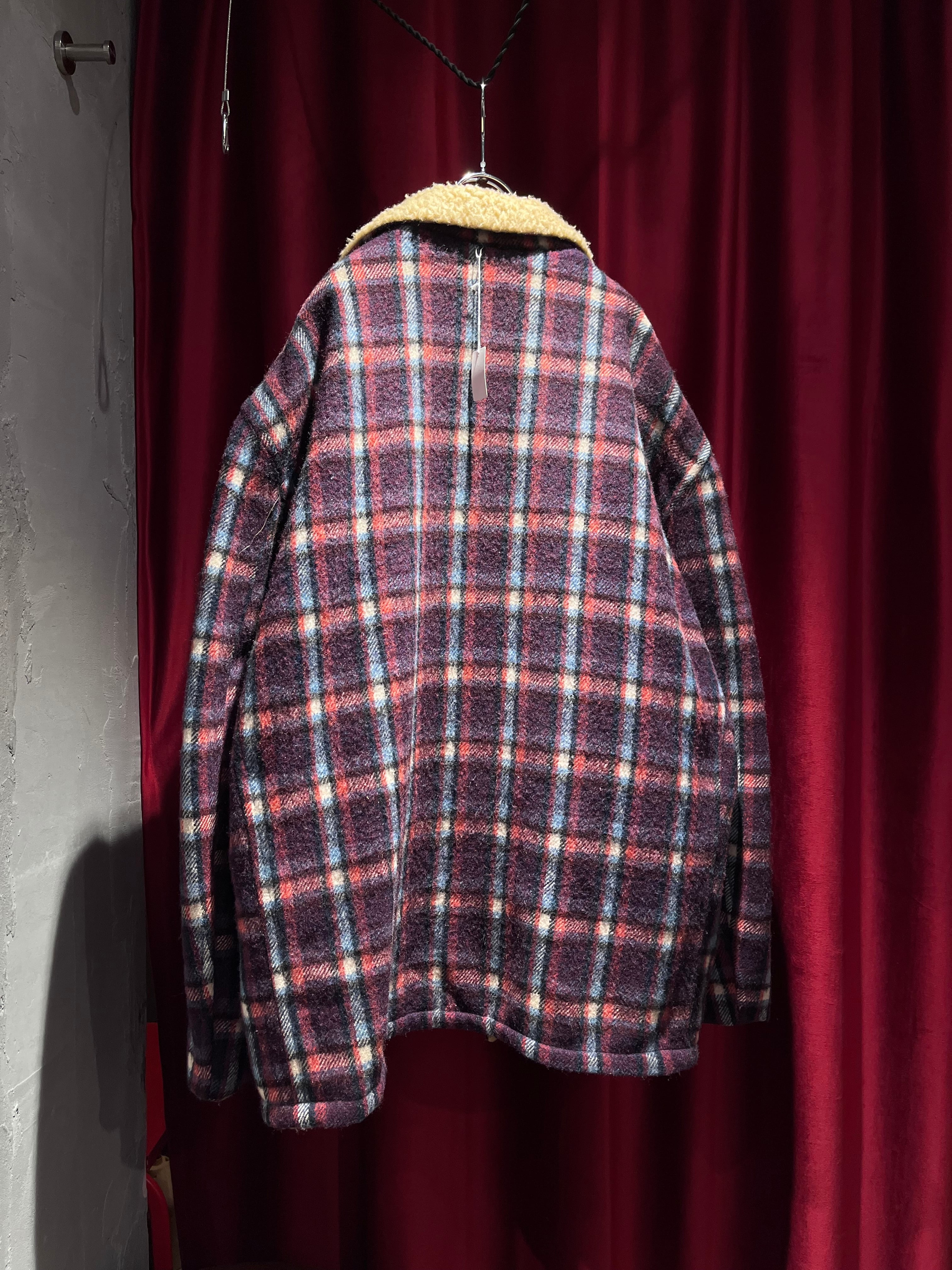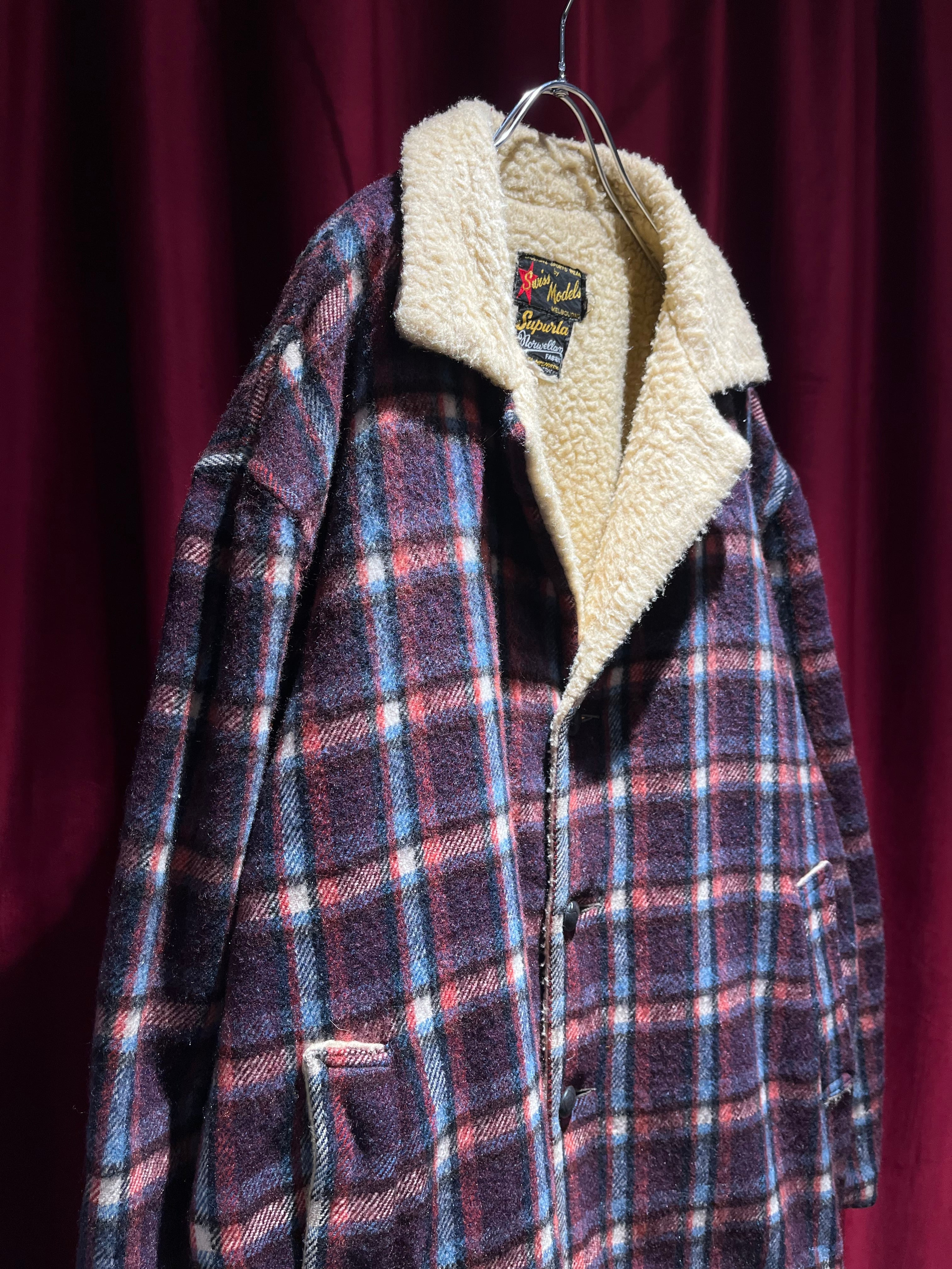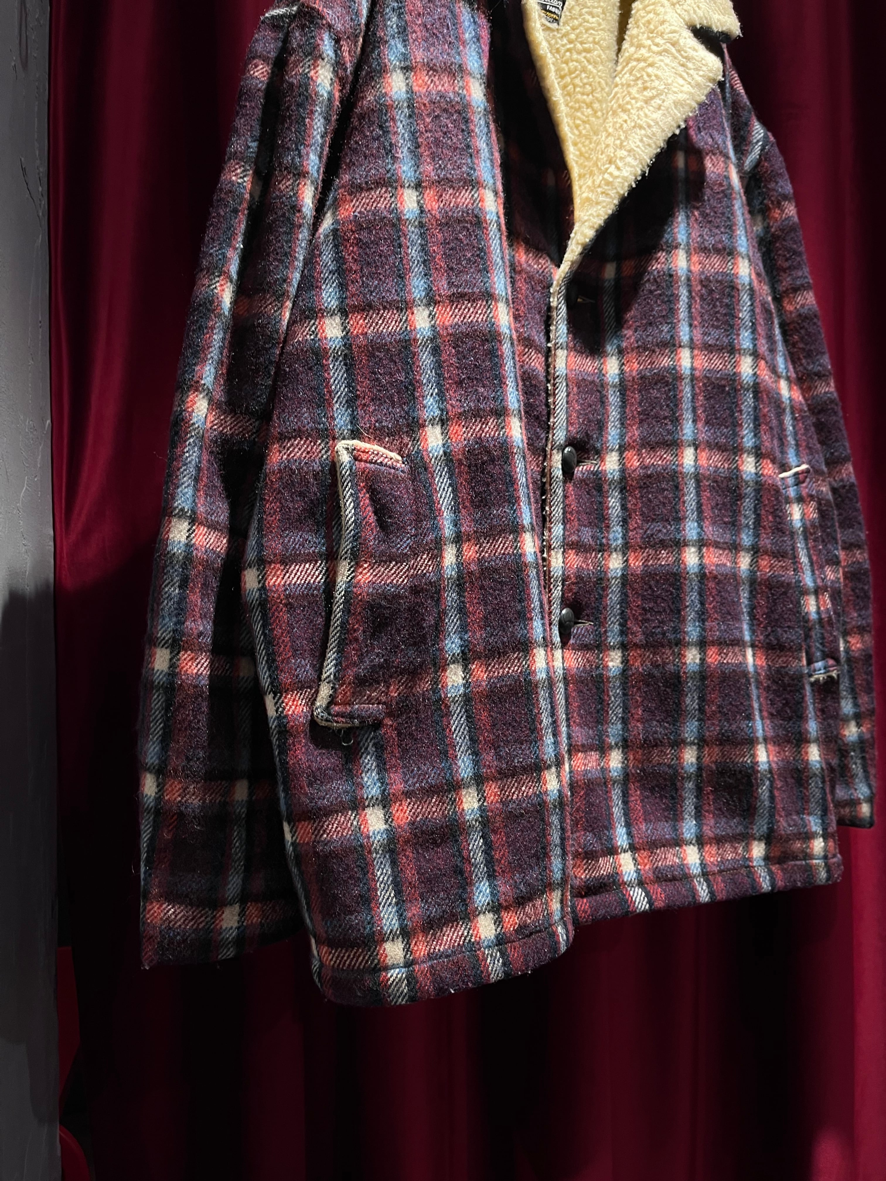 60s boa lining plaid wool jacket