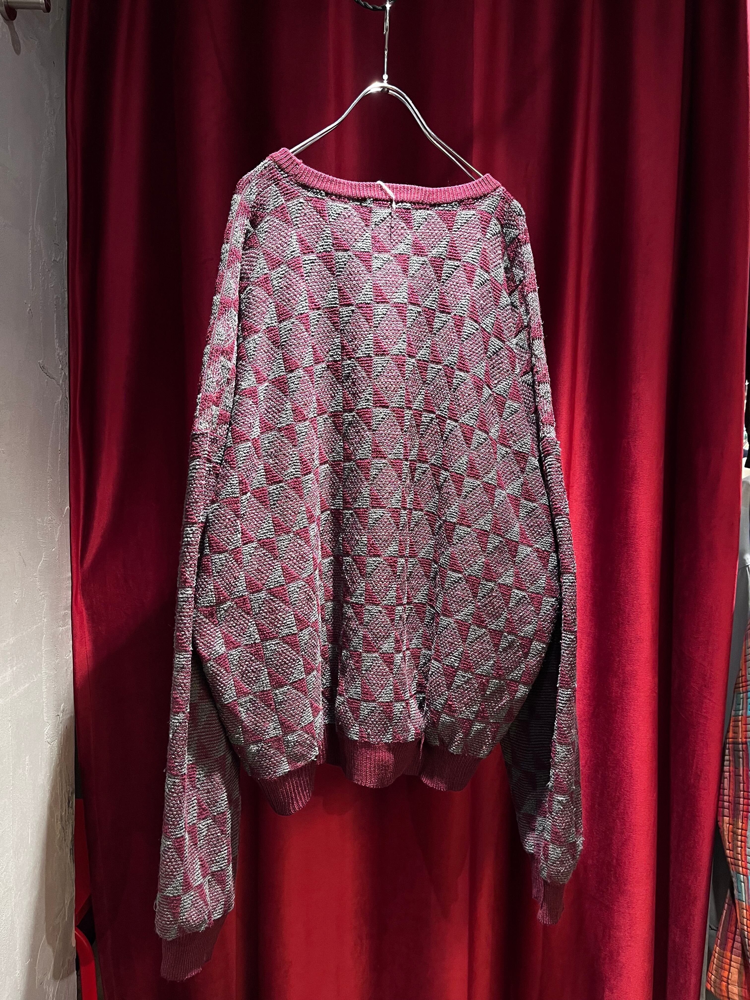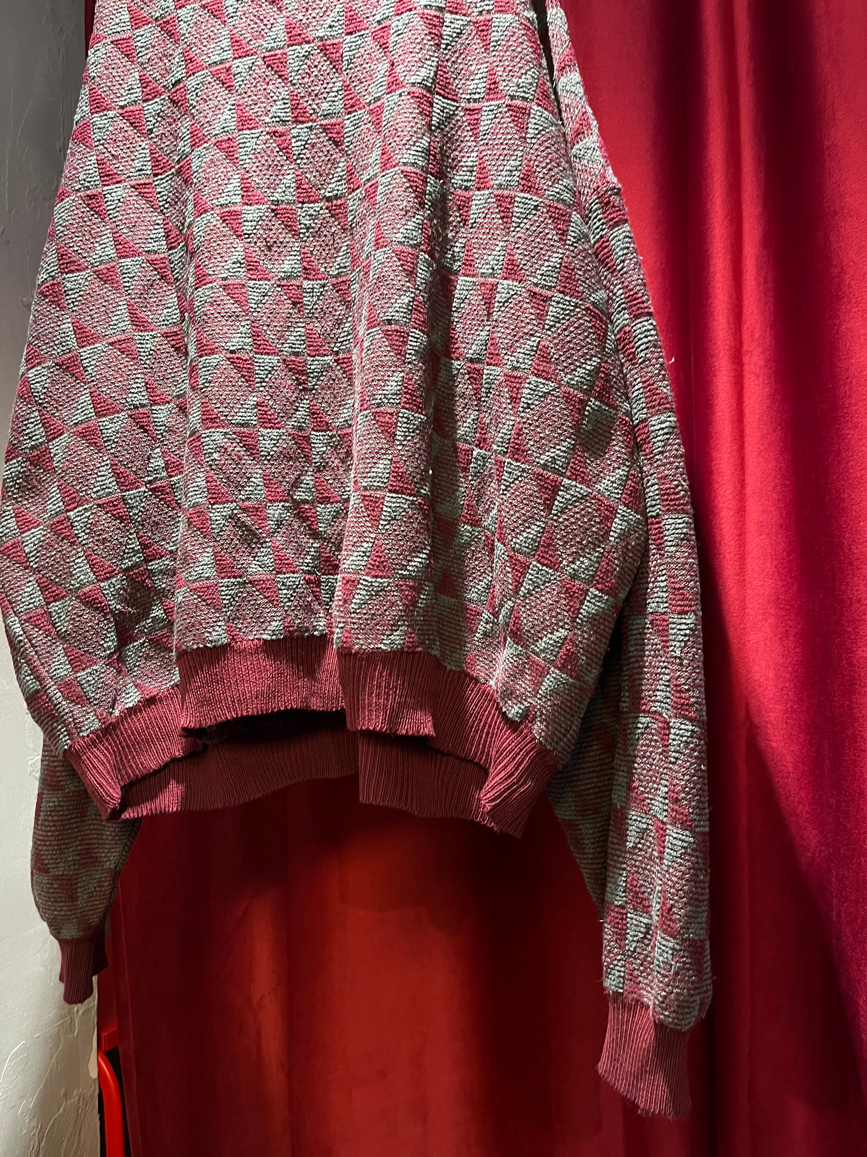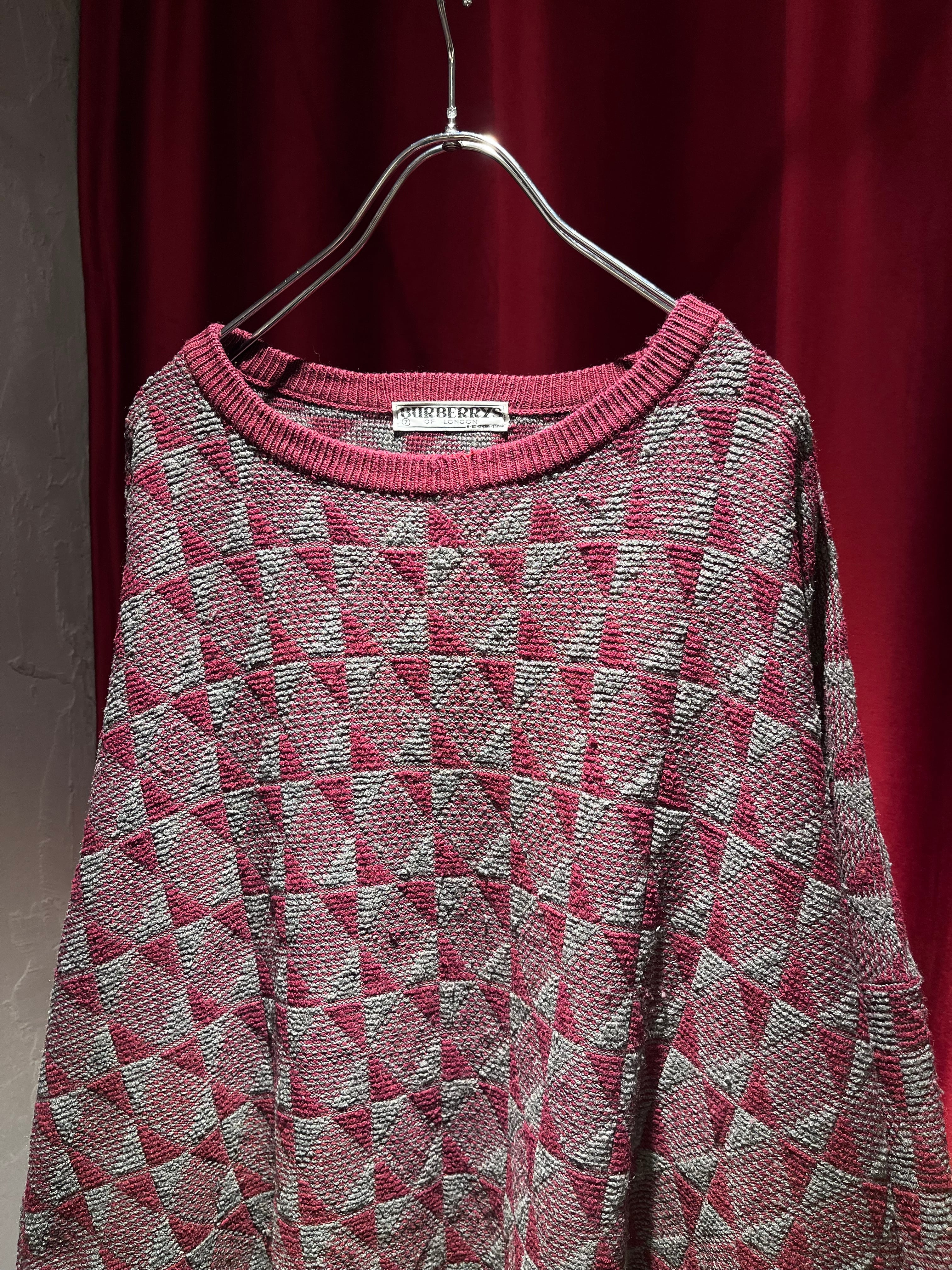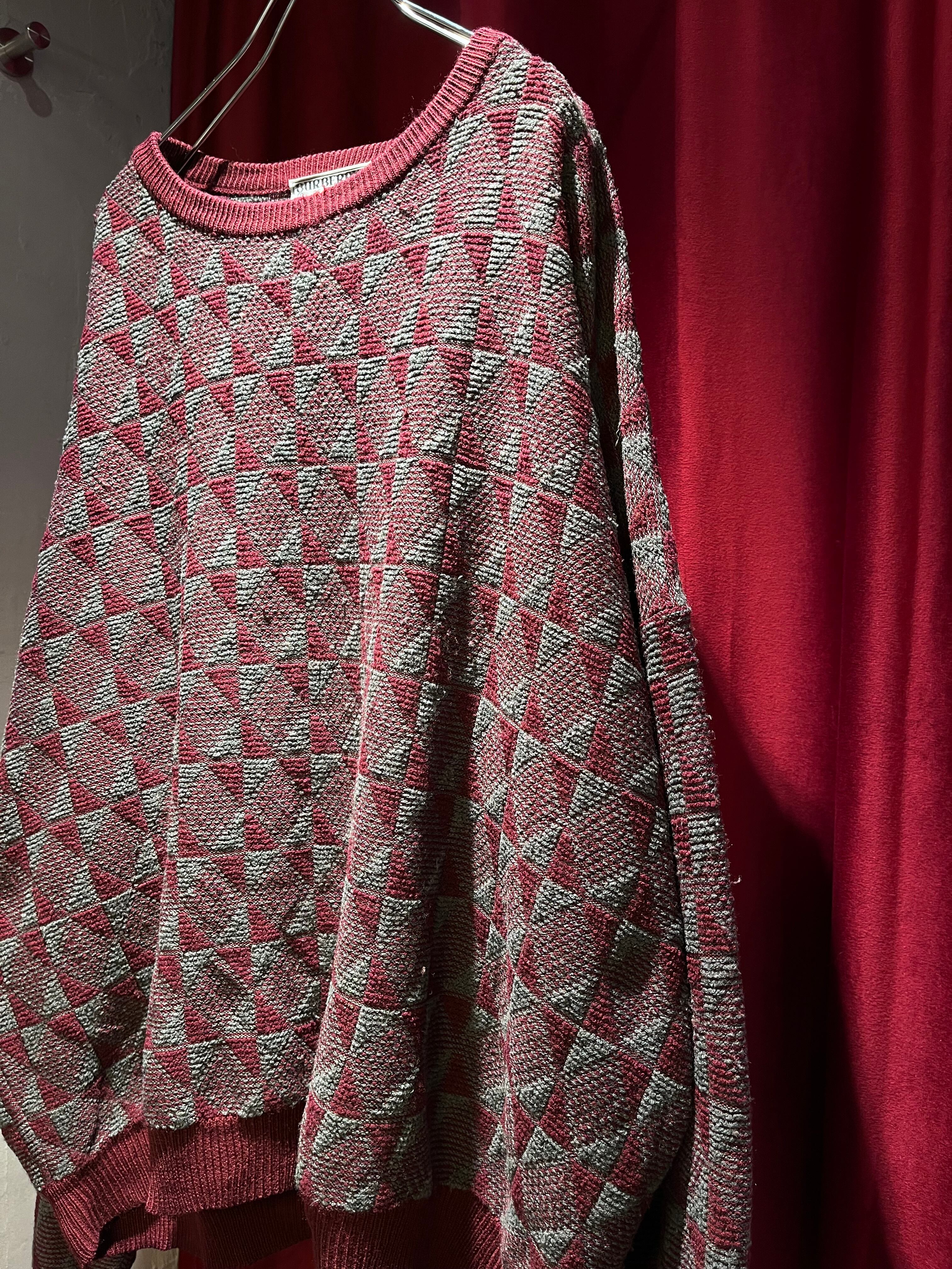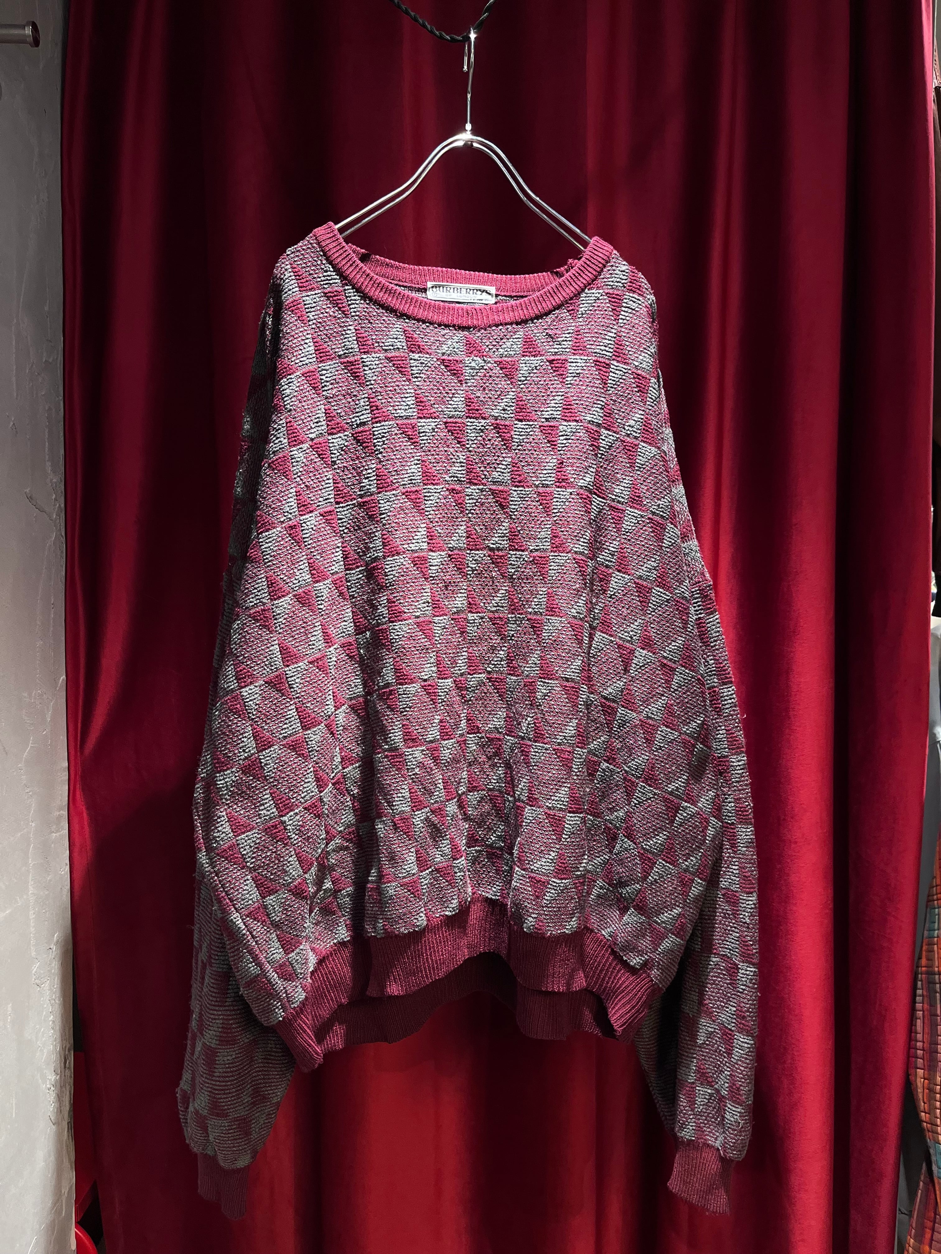80-90s "Burberry's" Geometric Pattern Wide Sweater