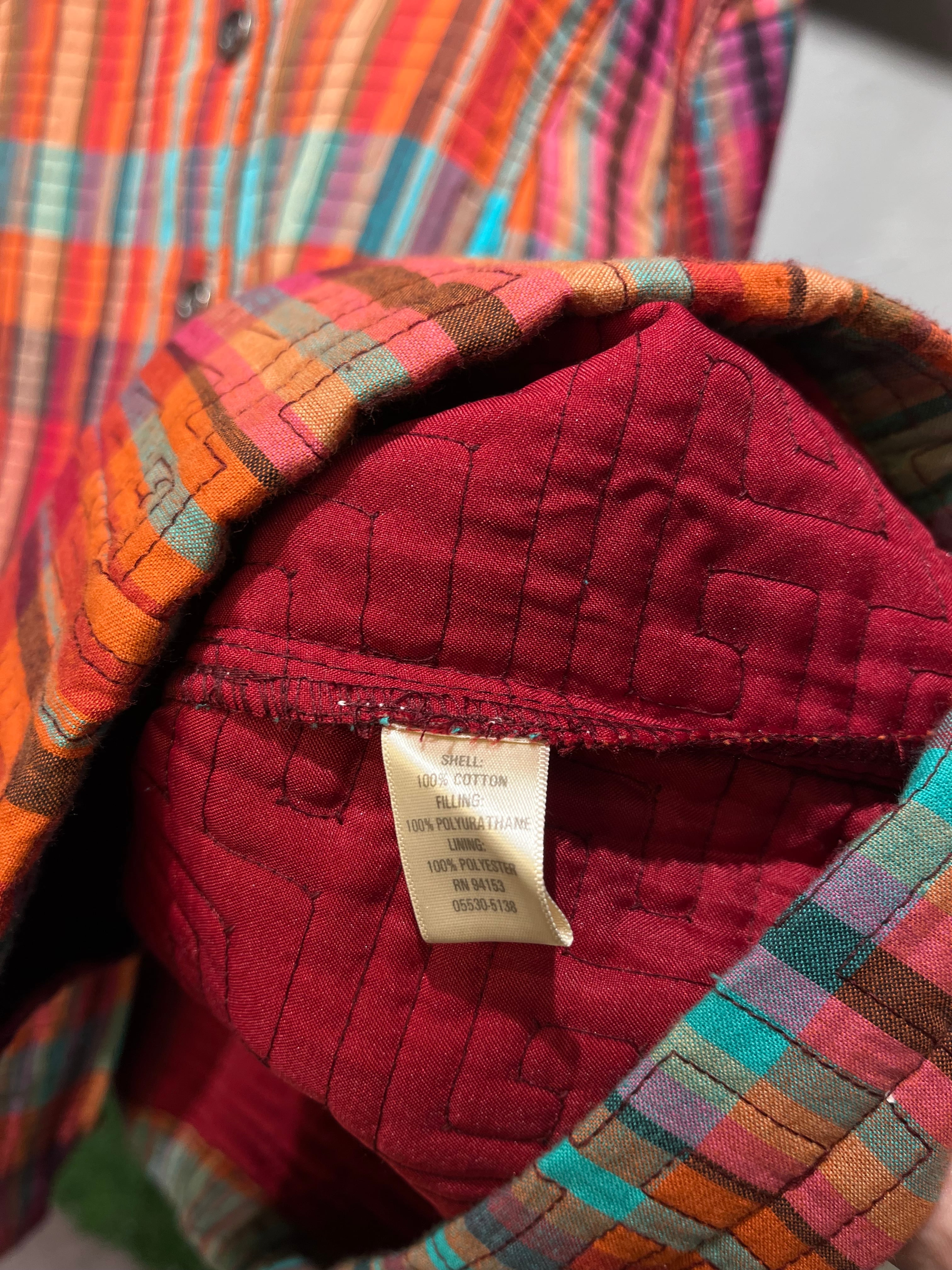 ターコイズ、オレンジ、レッド等エスニックなマルチカラーチェック