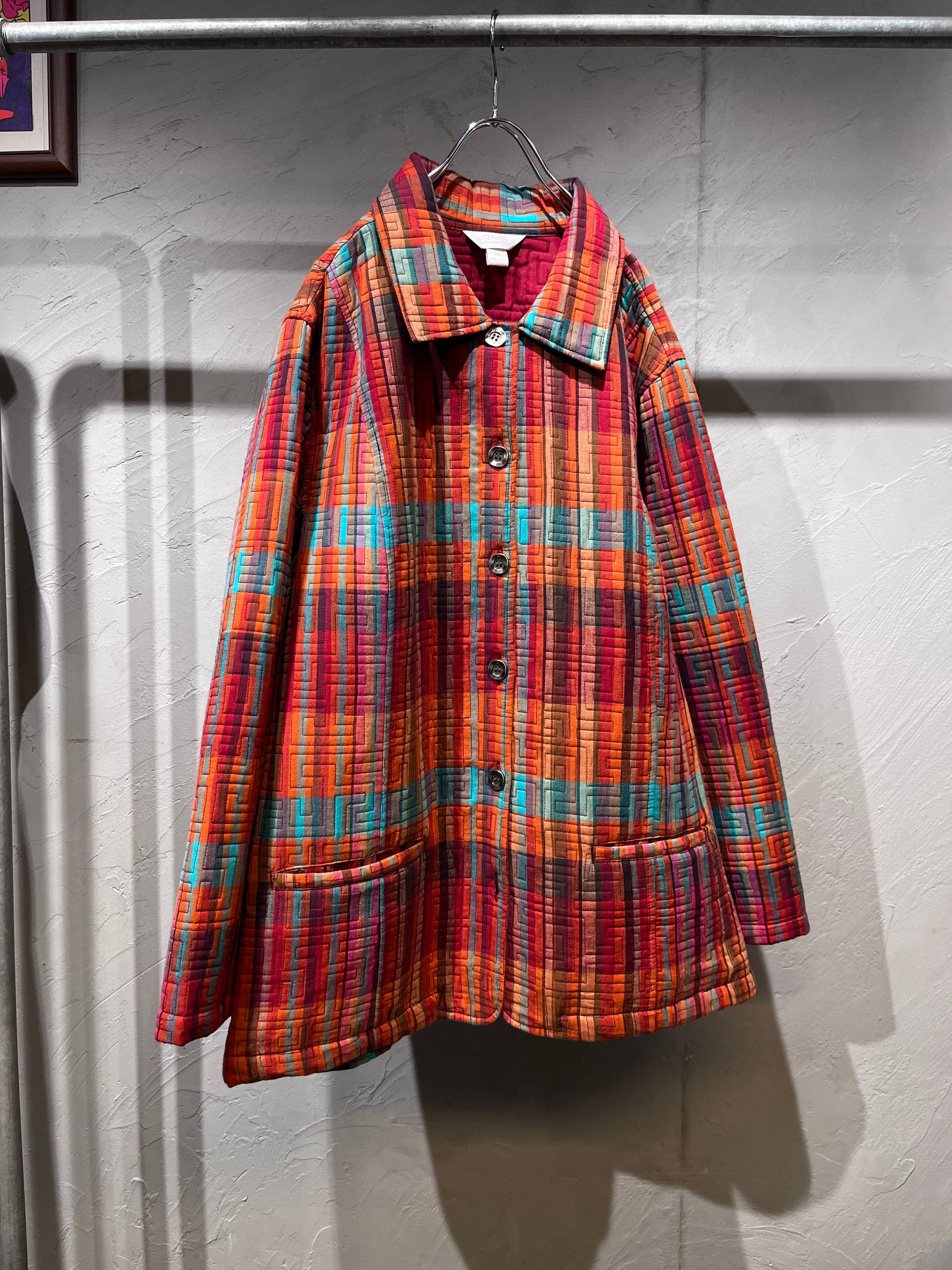 "C.J.Bank" Geometric Quilting Mulch Color Cotton Chore Jacket