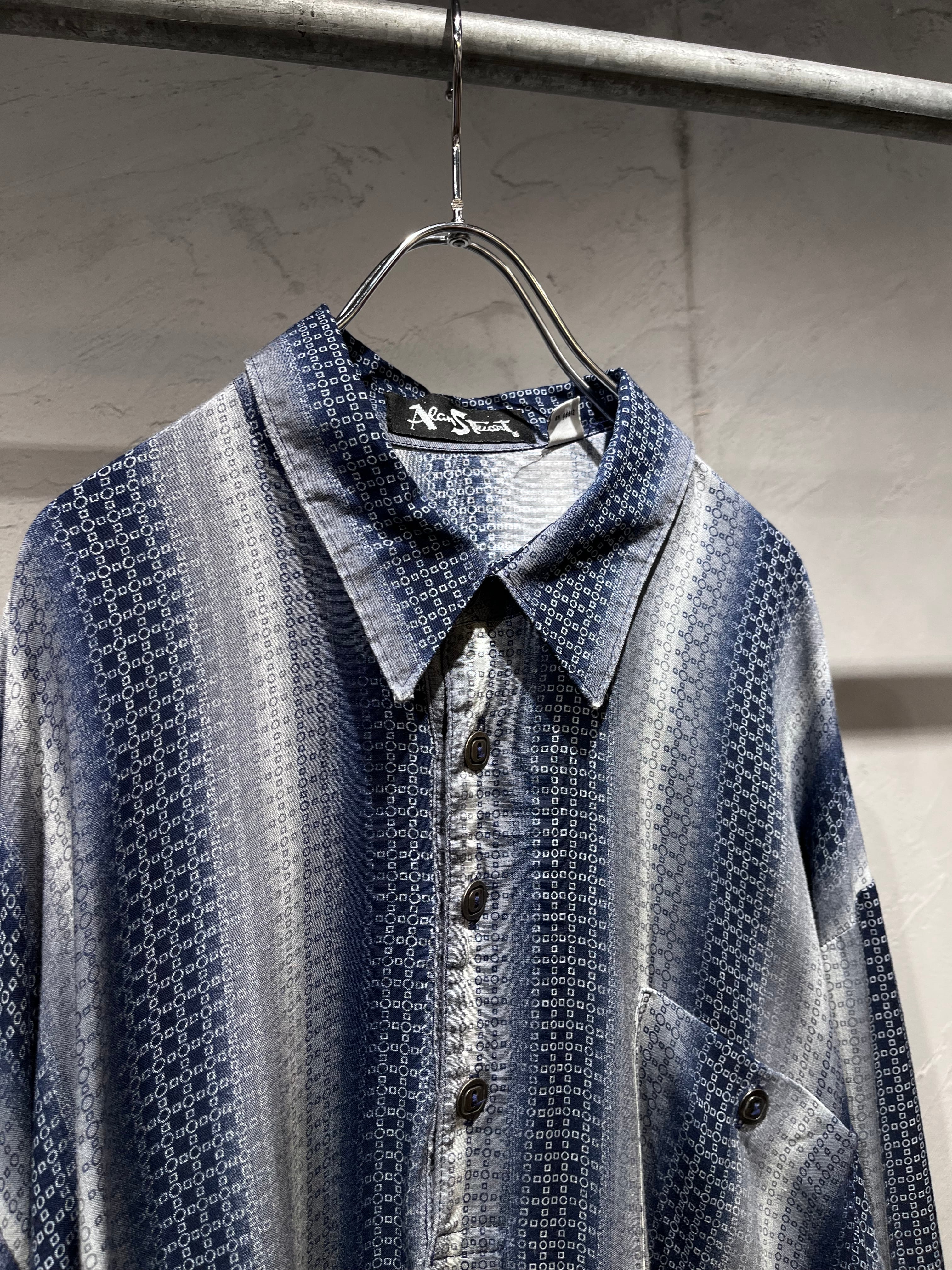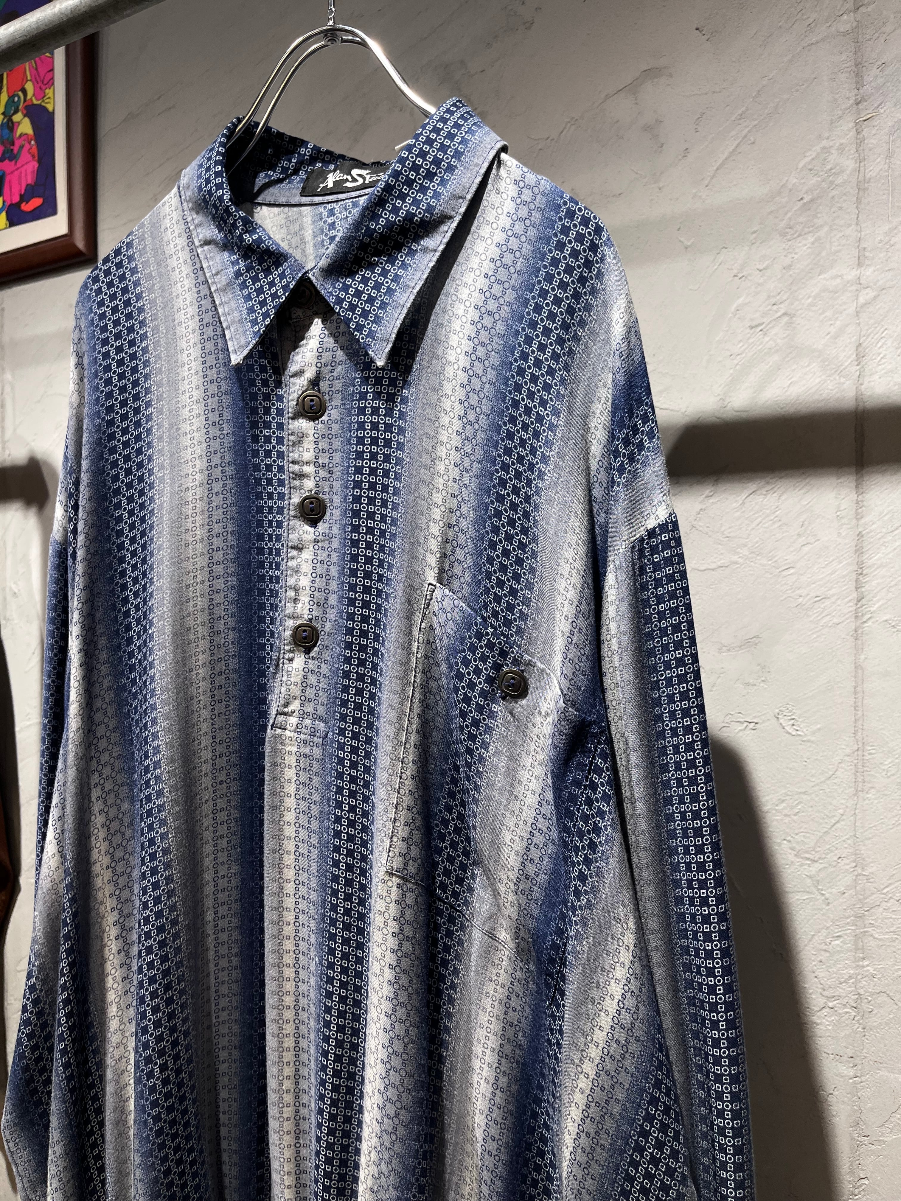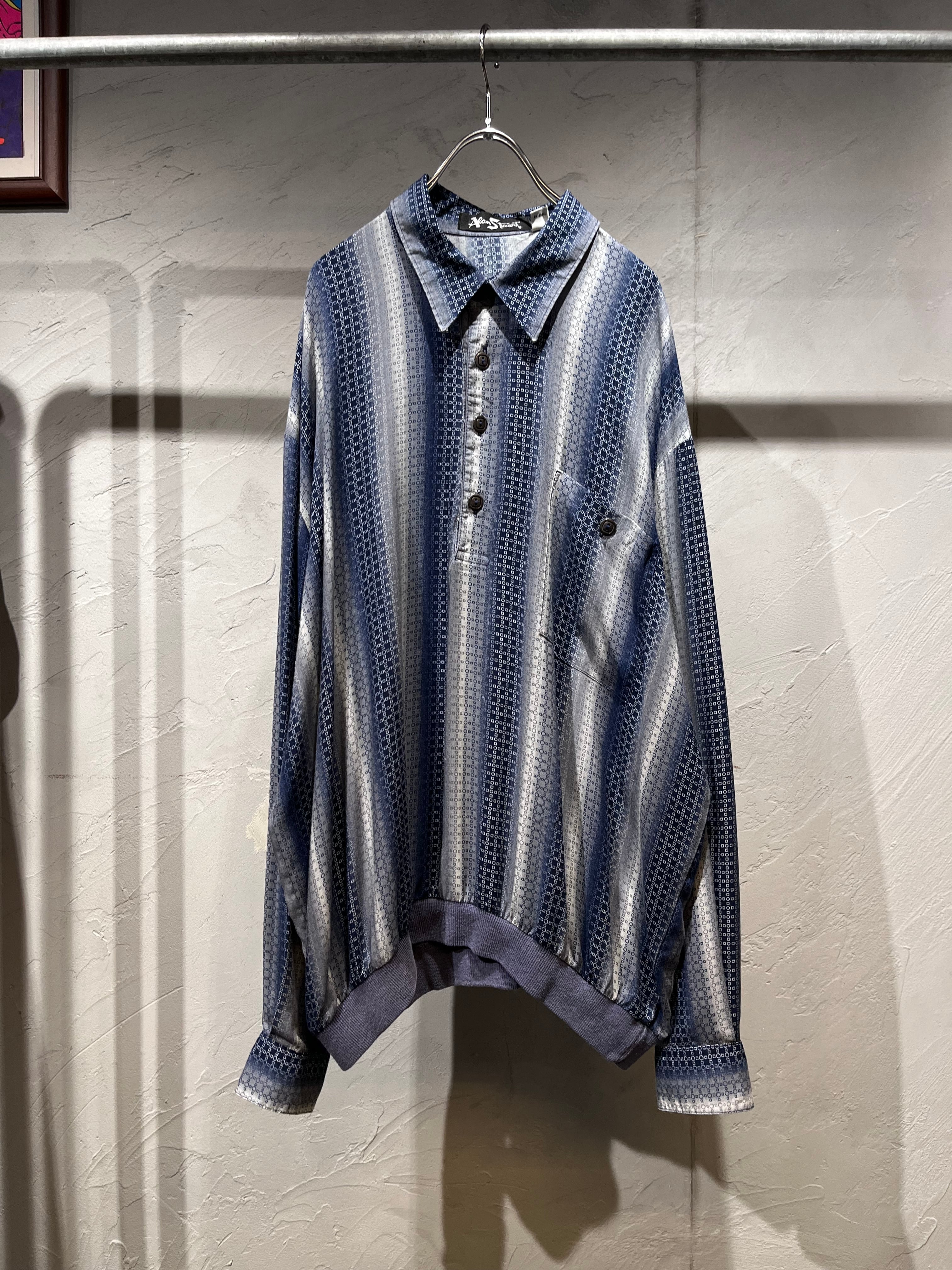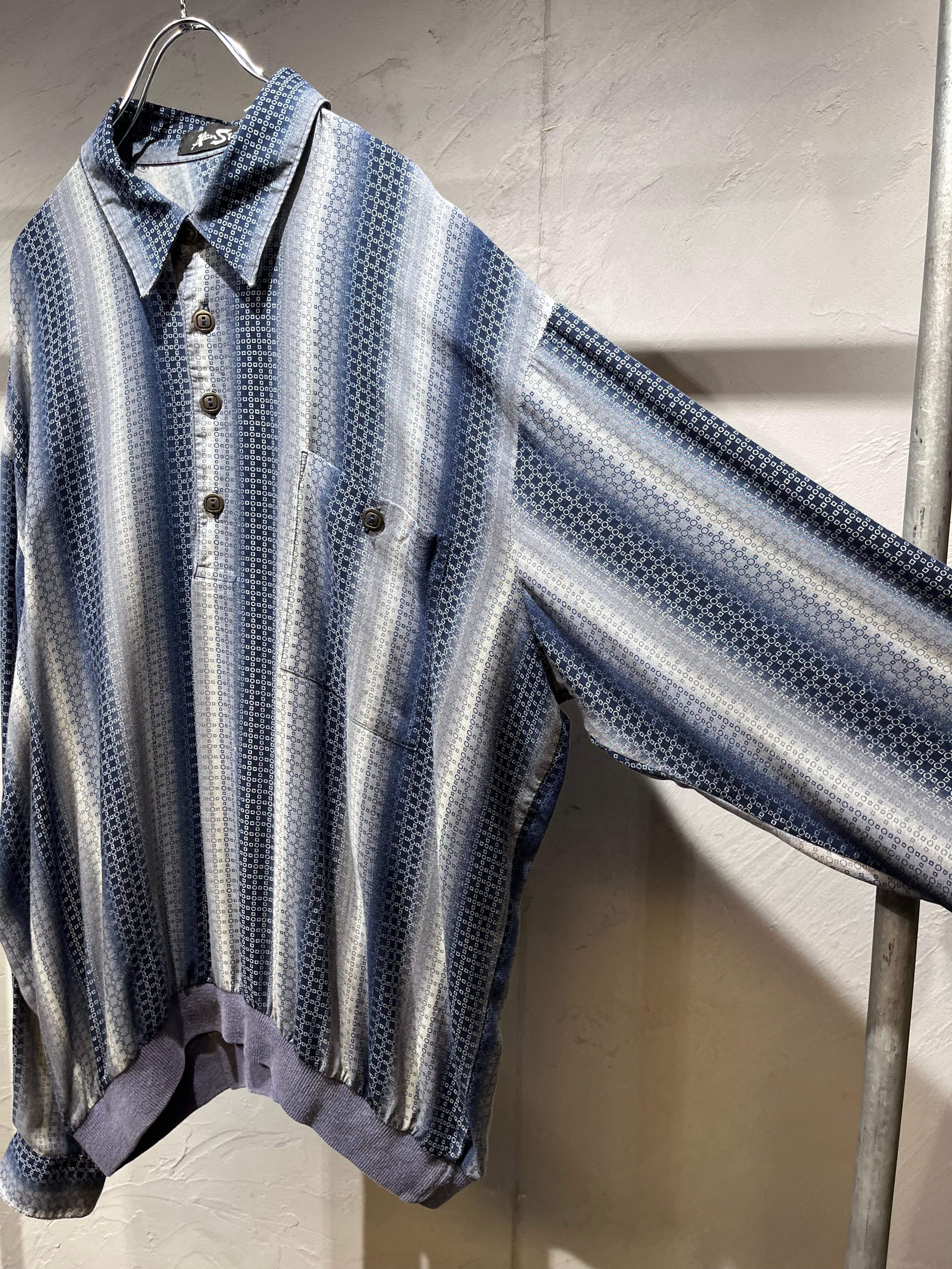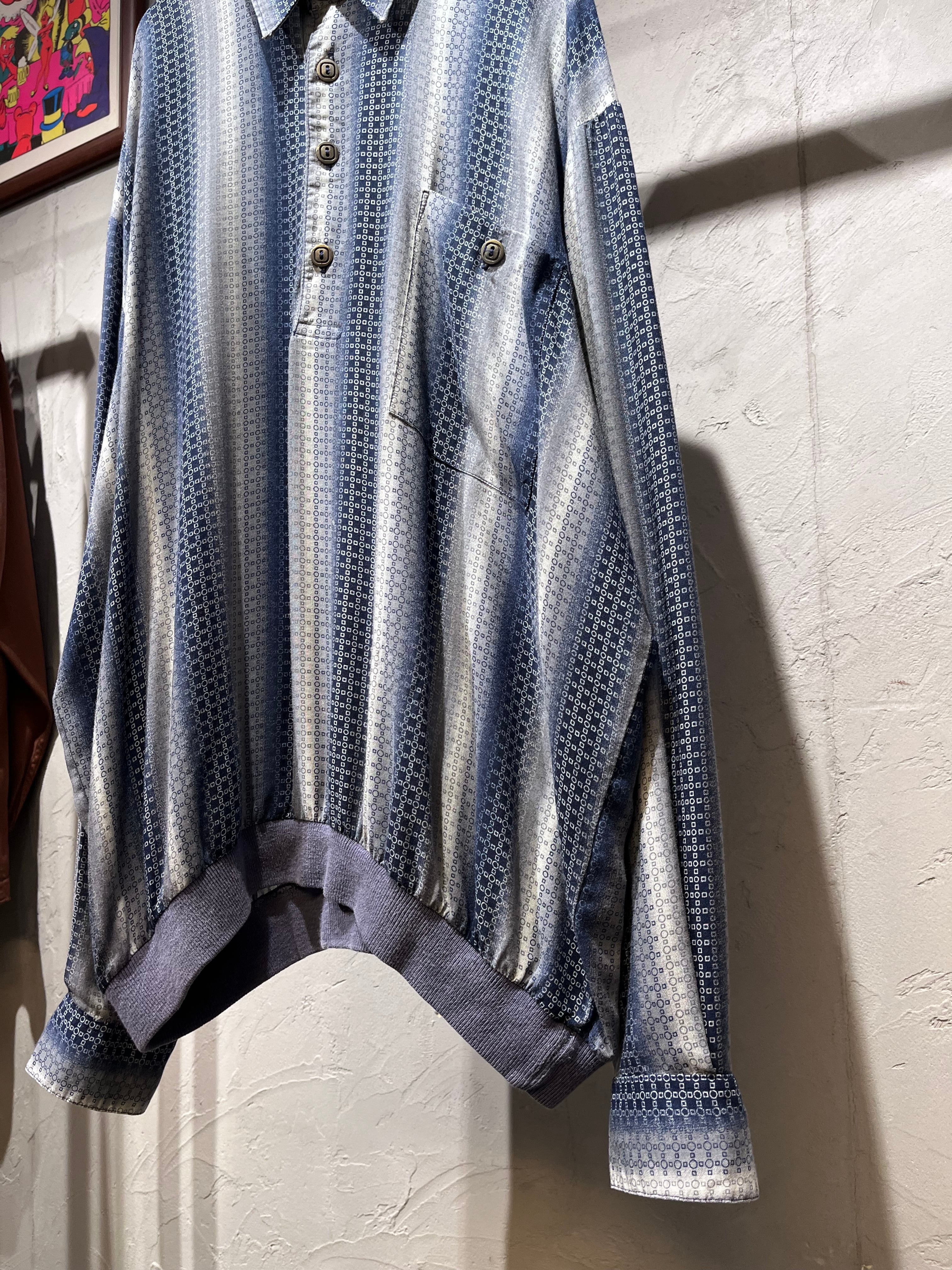 80s "Alan Stuart" Shadow Stripe & Pattern Rayon L/S Polo